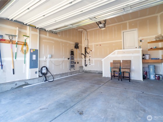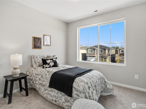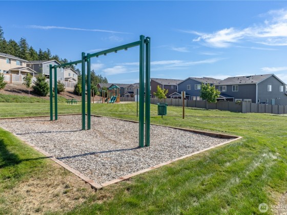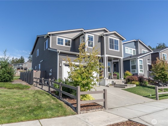 The Reserve at West Hills MODEL HOME offers numerous upgrades on a prime lot next to open space. Features include fully fenced yard, covered patio with gas fireplace & TV mount; great for entertaining. Freshly painted throughout. The open floor plan has LVP flooring, kitchen features island, quartz counters, tile backsplash, stainless appliances and living room has gas fireplace. 5 bedrooms (one on the main floor), 2.75 baths & large loft/family room. Gorgeous 5-piece primary bath has soaking tub & large walk-in closet. Upgrades: gas tankless water heater, air conditioning, security system & sprinkler system. Community amenities include walking trails, playground, half-court basketball & dog park. Convenient to HWY 3, Seattle Ferry & bases.