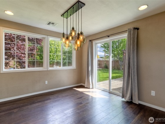 Lovingly kept One Level in the Heart of the Walla Walla Valley. Updates include granite countertops, high-end LVP flooring, and custom light fixtures. Super functional floorpan centers around the Great Room, perfect for gathering in the adjoining living room or seated at the large eat-in kitchen island. Formal Dining room can fit an extra large table to host your guests! Primary suite is separated from the main living area for extra privacy, and features vaulted ceilings, dual walk-in closets, and extra large vanity. The two guest rooms are on the opposite side of the home, perfect for bedrooms or a home office. Large corner lot is fully fenced for safety & privacy, surrounded by mature trees for beauty and to reduce potential noise.