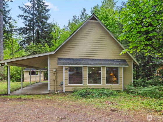 The cabin in the woods you’ve always dreamed of! Charming A-frame on .41 acres in Lake Cushman community—perfect for everyday living, vacation home or possible short-term rental. Oversized, divided 1 bedroom that gives space for two separate bedroom spaces. Features updated flooring, wrap-around driveway, space for an RV/garden, and two parcels. Large storage shed towards the back of the property and a fenced yard off the side of the house. Enjoy the golf course, pickle-ball, hiking trails, disc golf, community beaches and boat launches nearby. Just minutes from Hoodsport shops and dining!
