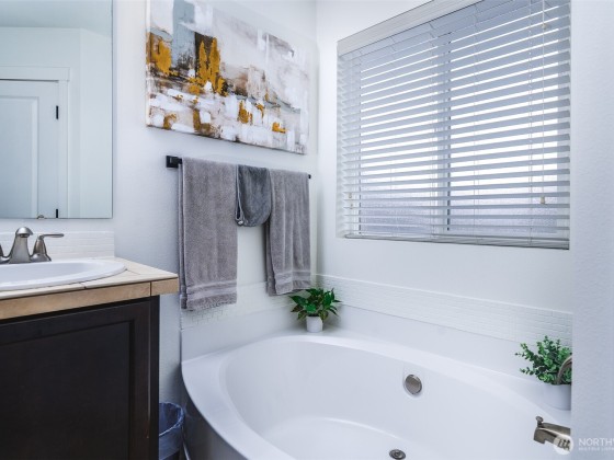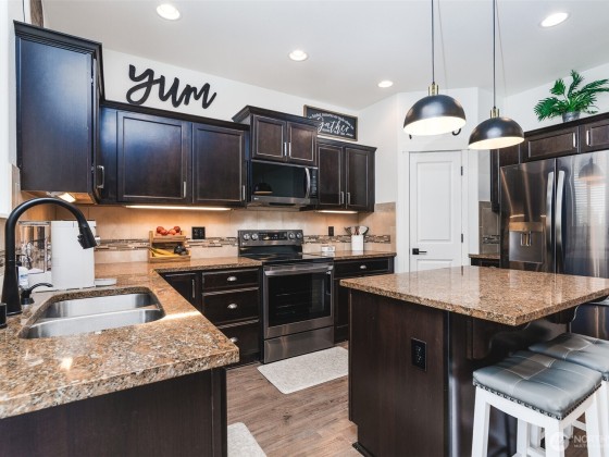 This meticulously maintained home has been stylishly updated throughout ownership, making it move-in-ready for you. Each living space has been thoughtfully designed with quality materials, including the covered patio with stamped concrete, shades, and custom landscaping - perfect for relaxing or entertaining. Functional floor plan with laundry up and open great room as well as cozy living room for quiet moments. The primary suite is generous and includes a 5-piece bath and walk-in closet. Nearly new appliances are all included. Community park/playground, in addition to public access at Munn Lake a few blocks away, and river access at Pioneer Park just down the road. Recreation surrounds you!