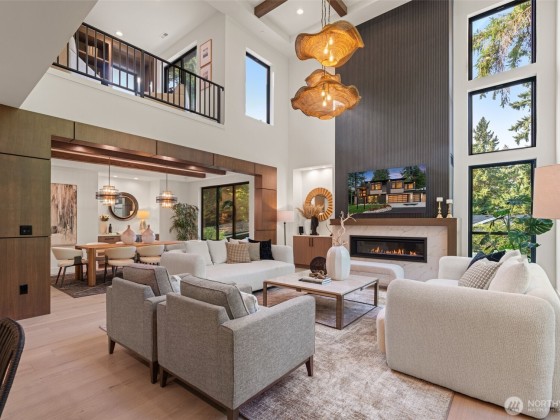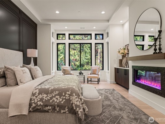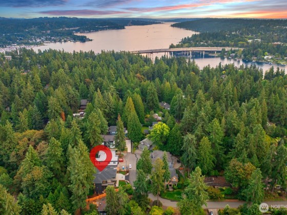 Everton Homes masterpiece on coveted Enatai cul-de-sac, rare privacy w Enatai Park behind. Refined design w soaring ceilings, ample natural light & exceptional finishes. Gourmet chef’s kitchen w prep kitch, stunning dining, main floor office & MIL. Upstairs creates the ideal plan w sophisticated primary suite featuring a spa inspired bath & walk in. 3 more beds up, one w ensuite, full bath & cozy reading nook. Daylight lower offers flex rm, theater space, wet bar, gym, 6th bedroom, ¾ bath & access to backyard. Elevated outdoor living w heated deck & covered patio. Smart home amenities paired w thoughtfully curated spaces ideal for everyday living & entertaining. Mins to top rated schools, DT Bellevue, I-90, 405, lakefront, shops & dining.