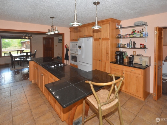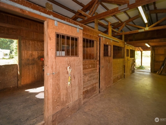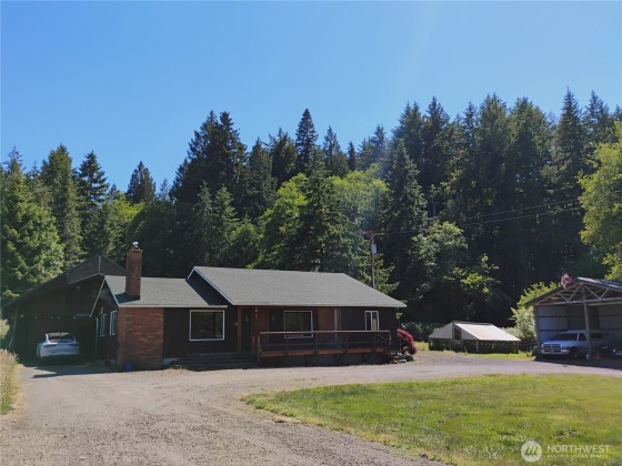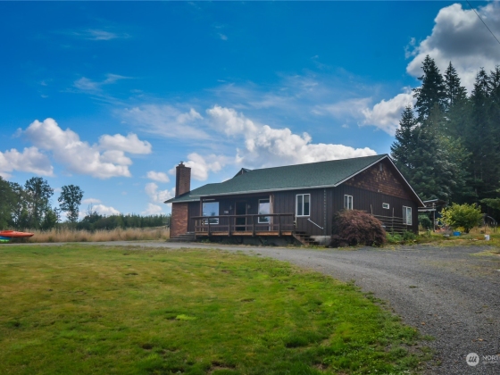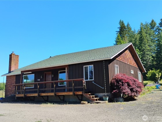 SOLID & WELL BUILT, Inquire about affordability: Sweet Rambler 3bdrm, 2BA kitchen features hickory cabinets, granite counters, farm sink w large dining-rm. Wood-stove w/ stone hearth in living room. Primary stuite w/slider to NEW deck, w/hot tub awaits. Features include, big garage w/attic rm. Great Barn w/3 stalls & heated tack rm. Hay storage + run in shelter. Block cooler for many uses. ROOF, SEPTIC, DECK all NEW. Covered RV parking, entry automatic gate, Wildlife surrounds the property. Private, quiet hideaway.