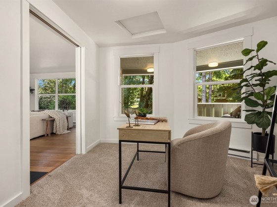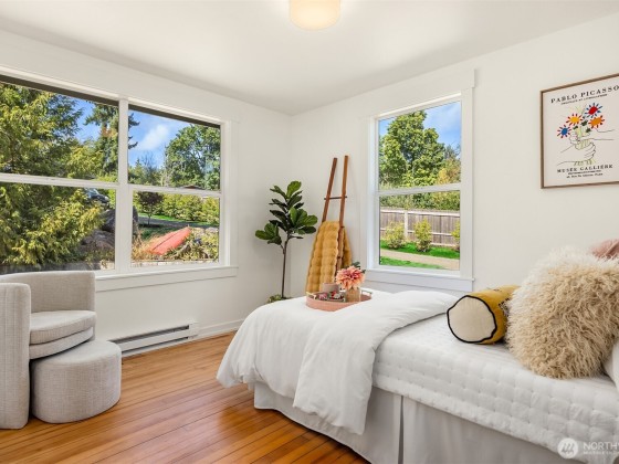 Remodeled and radiating charm, this single-story end-unit condo offers the best of Bainbridge living. Originally built in 1942 as an officer’s barracks, the home now features a fully renovated kitchen with sleek finishes and all new appliances—including dishwasher. The versatile bonus room has been updated and makes an ideal office, dining space, or flex area to suit your lifestyle. Two bedrooms, vaulted ceilings, and preserved fir floors add character and warmth, while the fenced yard is perfect for pets or play. Enjoy private outdoor spaces and the flexibility of both front and back entries. Just minutes to trails, beaches, and all the charm of Lynwood Center.