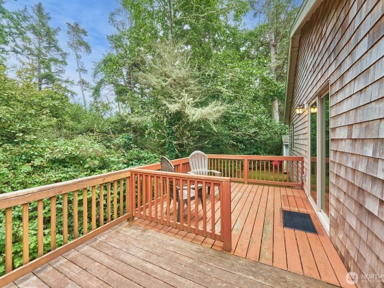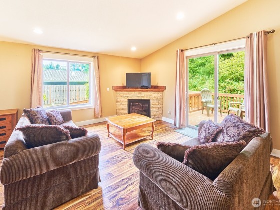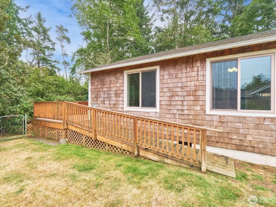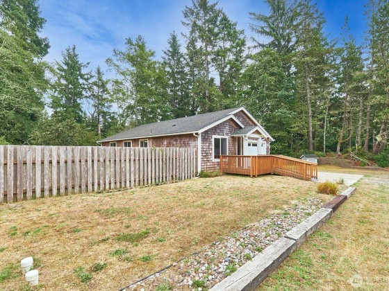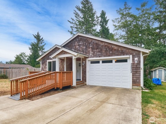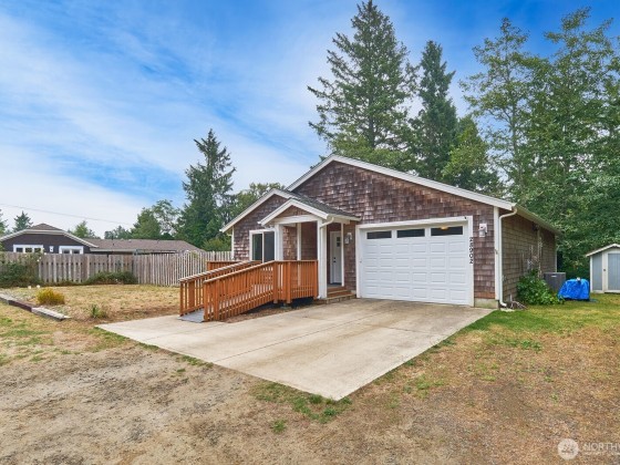 Enjoy quiet privacy in this 2015-built 2 bed/2 bath home, located just minutes from the beach, shopping or golf course. Thoughtfully designed for comfort and accessibility, both decks feature ramps—perfect for aging in place. Inside, you’ll find vaulted ceilings, granite counters throughout, stainless appliances, custom cabinets, and easy-care laminate floors. Bathrooms and utility room are tiled, with cozy carpet in the bedrooms. There's a new heat pump for the warm days and propane fireplace for the winters, while the open kitchen and great room flow to a nice back deck for barbecues or morning coffee. Fully fenced double lot for added peace of mind, no HOA... the low-maintenance life on the Cool Coast that you are looking for.