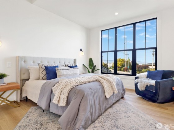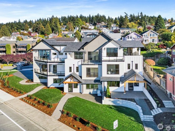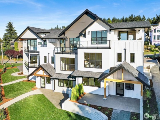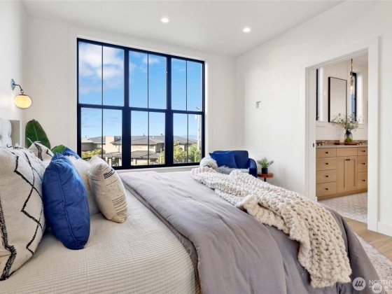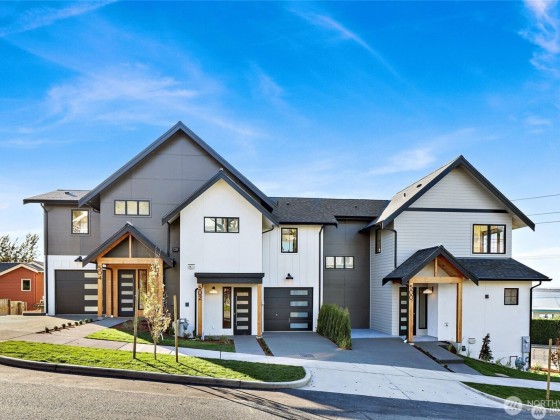 Like-new South Hill townhome offering a rare blend of luxury, design, and views. Inspired by Restoration Hardware, this 3-story residence showcases impeccable craftsmanship, abundant natural light, and sweeping bay views. Every detail speaks to quality—quartz countertops, custom cabinetry, designer tile, RH fixtures and premium appliances. Entertain with ease in the open-concept top-floor living space, complete with a walk-out deck overlooking the water. The main-level primary suite is a private retreat, thoughtfully designed with sophistication in mind. This architectural gem is more than just a home, it’s a lifestyle! Just moments from Boulevard Park, Taylor Dock, Fairhaven and downtown Bellingham.