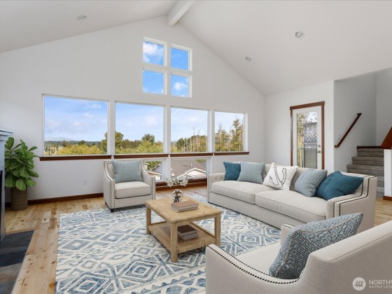Discover modern Anacortes living in this stunning 3 bed, 2.5 bath home just minutes from downtown and marinas, and a walk away from scenic hiking trails. The open main level showcases soaring ceilings, freshly refinished hardwoods, abundant natural light, and a private deck with territorial views. Retreat to the expansive main-floor primary suite with walk-in closet, while upstairs offers two large bedrooms, a full bath, and a versatile loft lounge. Brand-new carpet throughout and a spacious two-car garage add comfort and convenience. Whether you’re seeking a low-maintenance home base or the perfect summer getaway, this turn-key residence delivers Anacortes charm wrapped in contemporary style.
