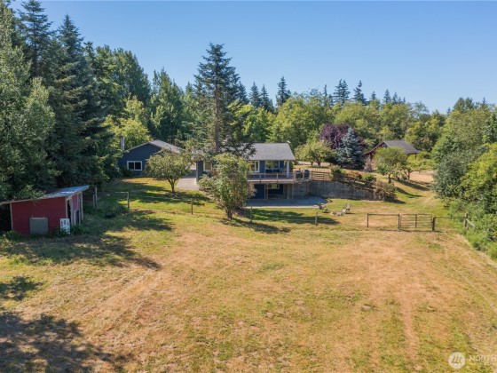 Country Living Meets Multigenerational Comfort. Discover the perfect blend of space, versatility & tranquility with this expansive 8+ acre property. The 3,904 sqft home features dual living areas with two kitchen ideal for multigenerational living or rental potential. With 4 bedrooms, an office (or optional 5th bedroom) & 3 full bathrooms, there's room for everyone. Step outside to a massive covered deck overlooking peaceful surroundings, including Ten Mile Creek. A detached three-car garage includes a bonus room, offering DADU potential or a studio space. Enjoy a spacious hobby barn, fenced pasture lands & stalls ready for horses or other animals, coral, mature fruit trees & garden space just 1.5 miles to I-5, shopping, schools, amenities