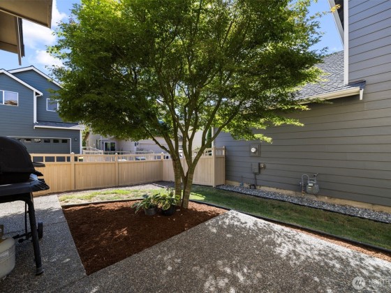 Experience 1,536 sq ft of inviting living space in the desirable Meridian School District. The open-concept main floor boasts new wide plank LVT flooring, a bright living area with a cozy gas fireplace, a spacious kitchen, and a large dining room. Upstairs features a large primary suite with a dual sink vanity in the 3/4 bath and a walk-in closet, plus two additional bedrooms that share a full bath and the laundry room. Outside, you will find a fully fenced backyard, with a patio that is ideal for barbequing and an attached 2-car garage with alley access, completing the package. Enjoy the playground and basketball court right across the street as well as living in this wonderful community in the Reserve at Cordata.