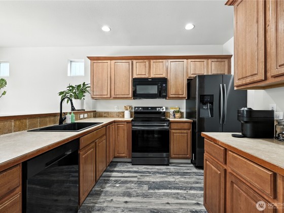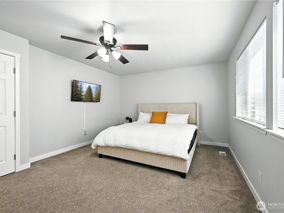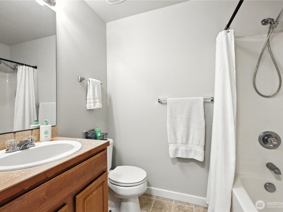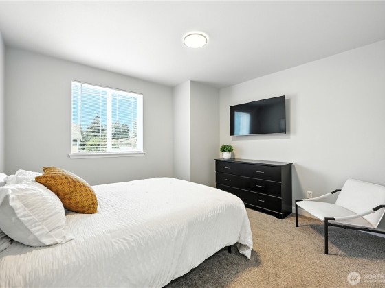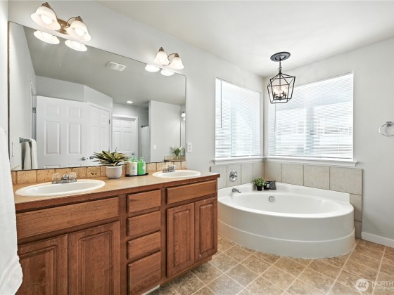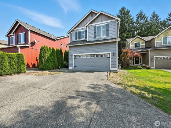 Don’t miss this updated and move-in ready 3-bedroom + den home! Recent updates completed in the last few years include fresh interior paint, carpet, stylish vinyl plank flooring, window coverings and newly redone lawn & patio. The soaring ceilings and open layout set the stage for gatherings, while the cozy living room fireplace brings warmth and comfort. Enjoy the refreshing AC on those hot summer days. The upstairs primary suite offers a large walk-in closet and private bath, joined by a loft and two spacious bedrooms. Convenient upstairs laundry room. Step outside to your fully fenced backyard retreat with direct access to scenic neighborhood walking trails. All this in a prime location close to shopping, dining, and JBLM. Welcome home!