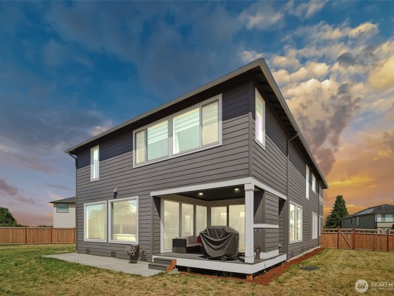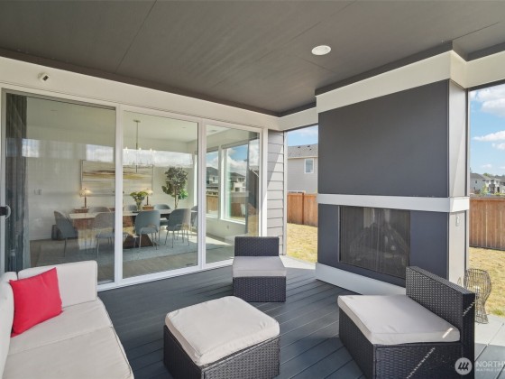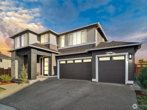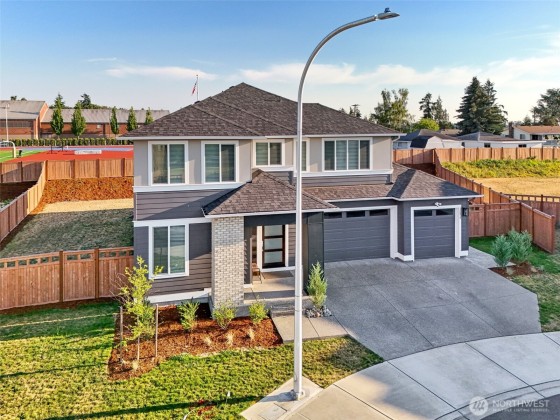 Experience elegance in "The Briar" by MainVue Homes at North Ridgeview, situated on a 1/3-acre cul-de-sac lot. This modern design welcomes you through a grand twin-columned porch into a chic home office. A versatile multi-purpose room awaits down the hall, while the open great room and dining area seamlessly connect to the Signature Outdoor Room and spacious, fully fenced yard through wall-height sliding doors. The gourmet kitchen boasts quartz counters, KitchenAid appliances, and a large butler's pantry. Upstairs, the primary suite features a frameless walk-in shower, designer tub, double vanities, walk-in dressing room, plus 3 additional bedrooms and a leisure room. Mortgage savings may be available for buyers of this listing.