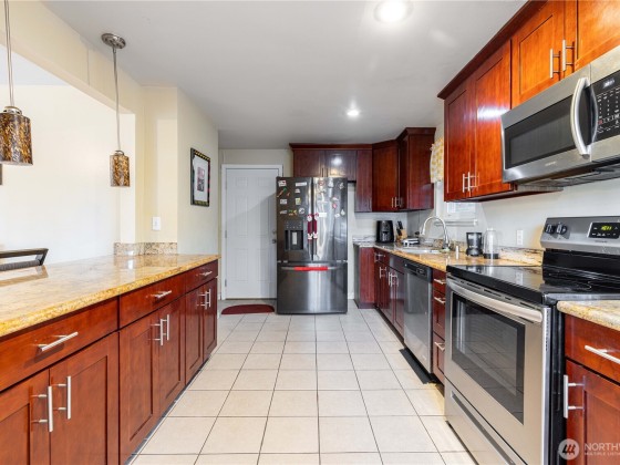 Location! Location! Location! Beautifully Renovated Home In Tukwila Just Above Southcenter! This Wonderful Home Features 5 bedrooms and 2.5 baths, A Full Mother In Law Apartment Downstairs With It's Own Kitchen, Living Room, Dining Area, 3 Bedrooms+Laundry And A Seperate Entrance! The Main Floor Is Absolutely Gorgeous All New Flooring, A New Kitchen With Granite Countertops, Cherry Cabinetry And Stainless Appliances, A Huge Deck Over The Garage For Entertaining In The Summertime, A Nice Big 1/3 Acre Lot Guarantees A Little Elbow Room Between You And Your Neighbors And The Best Part Is The Location! Minutes To I5, 405 And Southcenter Mall! Come See For Yourself This Wonderful Gem In Tukwila!