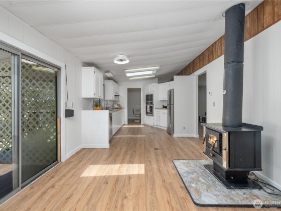 Private, Peaceful, & Perfectly Updated - with SHOP on .39 Acres! Step into comfort with this move-in ready 3 bed, 2 bath home that blends modern updates with cozy charm. Enjoy new flooring, brand-new stainless kitchen appliances, and bright, open living spaces that flow effortlessly. Bonus room with a warm wood stove & sliding doors to a covered deck invite year-round relaxation. RV carport includes full hookups, while the 488 sf SHOP - fully powered, insulated, and skylit - perfect for creating a perfect workspace (or future DADU!). The fully fenced double lot with mature trees, two concrete pads, and gated entry ensures your privacy and tranquility. Tucked in a quiet neighborhood close to all amenities - this home truly checks every box!