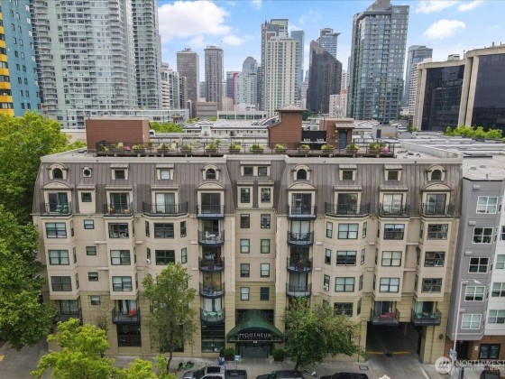 Located in the heart of Seattle, this smartly designed studio at The Montreux offers upscale city living with the feel of a true 1-bedroom—featuring a separate designated sleeping area with closet. It has a sleek convenient layout and high-end stainless steel appliances that elevate everyday comfort. With a spacious closet, secure garage parking, and premium building amenities including a rooftop deck with Space Needle, mountain and city views, fitness center, business lounge, and community room. This home delivers both style and convenience. It's **no rental cap** and **pet-friendly policy** add investment appeal, making it ideal for those seeking a sophisticated home that also performs very well as a solid short-term rental.