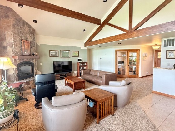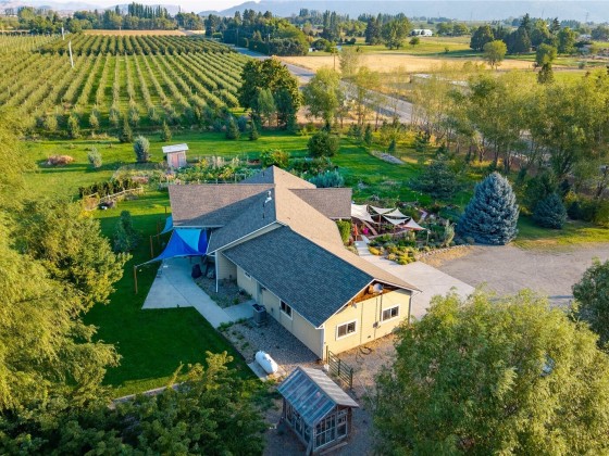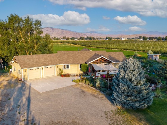 Omak - Robinson Canyon - 360 Degree View! Meticulously built home w/beautiful features, garden space/greenhouse, oasis front garden, & additional outbuildings! 2946sqft 3+bedroom/3 full bath on 5 irrigated acres! Attached 799sqft garage w/work bench & additional storage. Granite countertops throughout entire house - including stairwell ledge & all bathroom vanities. Vaulted ceilings w/beautiful wood beams & ceiling fans. Primary bedroom: attached en-suite w/double vanity, walk in tiled shower, & walk in closet. Basement includes bonus living room, full bathroom, utility room, & additional finished room. Cement siding. Propane fireplace w/cascading rock from floor to ceiling. Duck Lake Water. Septic. $674,900 MLS-2425651/H-3712
