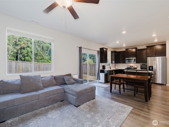 Welcome to this spacious, thoughtfully designed home ideally located near both PSNS & Bangor, making it a perfect choice for military personnel & commuters alike. This beautiful 2-story home features, an open-concept main floor w/durable LVP flooring that flows seamlessly through the great room, dining area, & a stunning kitchen equipped with 42" cabinets, a quartz-topped island, and stainless steel Whirlpool® appliances, & A/C. Upstairs, you'll find a generous owner's suite w/walk-in closet & private bath, plus two additional spacious bedrooms, full bath, & a versatile flex room ideal for a home office, workout space, or playroom. Enjoy outdoor privacy in the fully fenced backyard, backed up to a green space. Storage racks in garage stay.