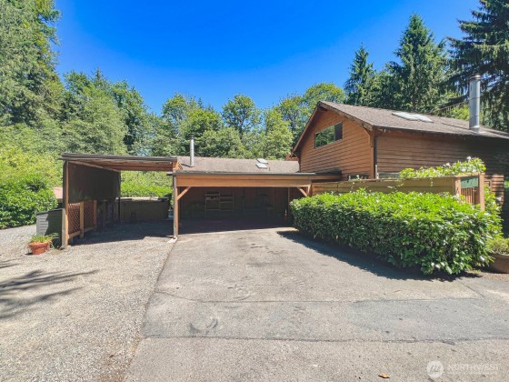 One of a kind 4 bedroom home, built in 1945 & remodeled in 1980. Current seller recently updated Kitchen, Flooring, Plumbing & Water Heater. Huge windows w/ views of gardens, patios, and wooded lot. The home features front room w/ attached dining room along w/ Family room w/ wet bar perfect for entertaining or relaxing by the wood stove. Patios & open lawn spaces make outside gatherings a breeze. Family sized hot tub conveys. Generator Carolyn onveys. Level 1.35 acres w/ mature landscaping & visiting deer, w/ Boxley Creek flowing by. 3 car carport & 620 SF detached garage/shop. 5 min to I-90. Ski in 30 min at Snoq Pass. Hike Mt Si, Twin Falls, & Rattlesnake Lake 10 min away! Snoq Valley Schools. Live where you play! Priced to sell!