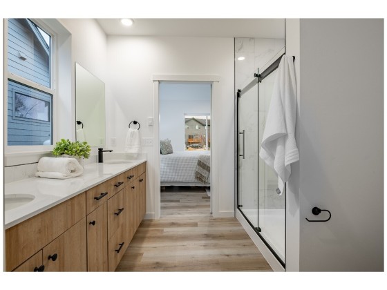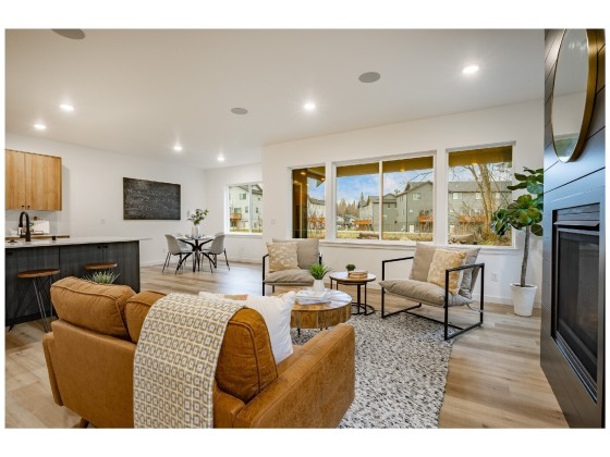 Welcome to The Ridge in Blaine, WA! This stunning single-level home on a corner lot next to green space features 3 bedrooms and 2 bathrooms, offering a spacious, step-free layout for easy living. The open-concept living area boasts high ceilings and a cozy propane fireplace, creating an inviting space for modern lifestyles. Step outside to the covered back patio, where you can enjoy the outdoors year-round. High-end finishes include luxury vinyl plank flooring, quartz countertops, and a low-maintenance slab-on-grade foundation. *LIMITED-TIME SAVINGS $5K with Seller Credit & 0.75% Lender Credits with our Preferred Lender. Owner Financing is a possibility with $80k down, 1 year term at 5% interest on this home only.