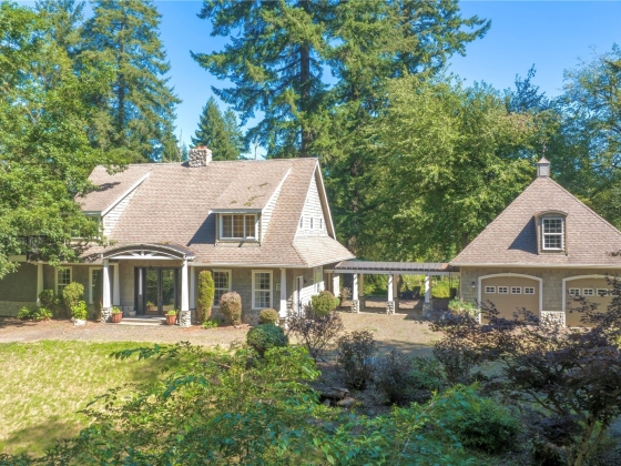 Nestled on 20 wooded acres, with exclusive waterfront access, The Nantucket Estate boasts two ponds and a midstream creek, offering endless outdoor enjoyment. Escape to this stunning 4-bed, 3.5-bath home, perfectly blending elegance with nature. Vaulted wood-beamed ceilings, a stone fireplace, and floor-to-ceiling windows create a bright, inviting space. The gourmet kitchen, with granite countertops and premium appliances, is ideal for entertaining. The expansive deck is perfect for entertaining and enjoying the natural beauty. A detached guest cottage with air cooled wine cellar offers a private retreat for guests or additional living space. Just minutes from town, this private oasis awaits!