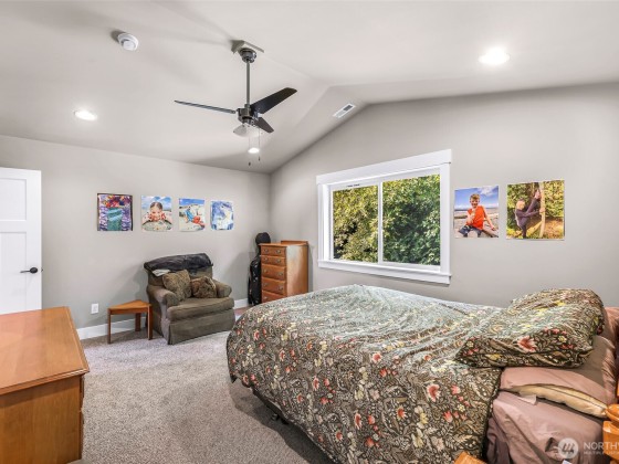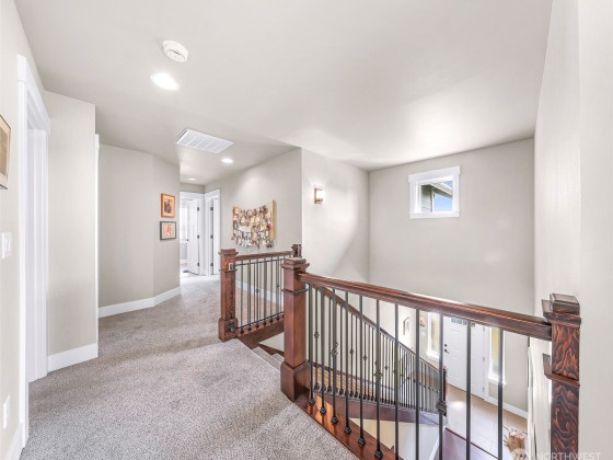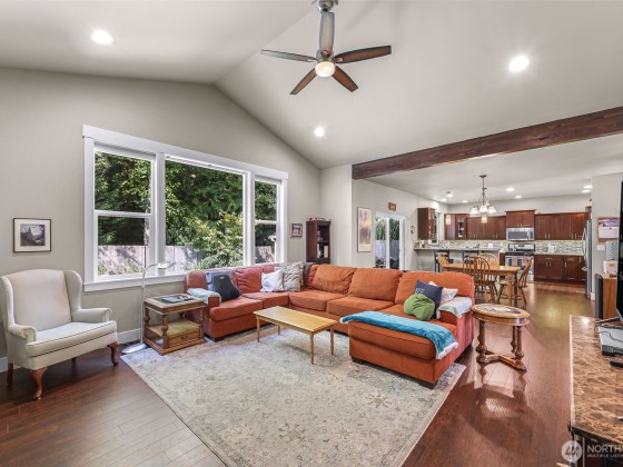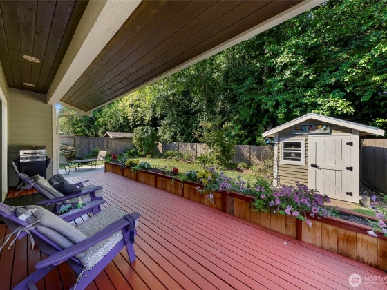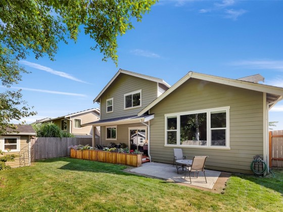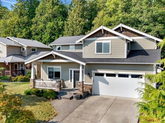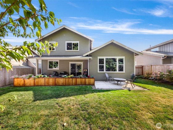 Welcome to the highly sought-after Pacific Highlands neighborhood, complete w/ parks, ball courts, play gyms, & picnic areas, just around the corner from the esteemed Cascadia Elementary. The open layout of this beautifully maintained Modern Craftsman home features an expansive kitchen designed for crowds, w/ beautiful laminate floors on main level, carpeted upper level, stunning spindled staircase, & an abundance of windows w/ breathtaking views of Mt. Baker. Fully landscaped yard is fenced on 3 sides & backs to serene forest. Relax on the charming covered front porch w/ recessed lighting & enjoy a large back deck—ideal for relaxing or entertaining. Exterior hot water faucet, tankless water heater, & 95% energy-efficient gas furnace.