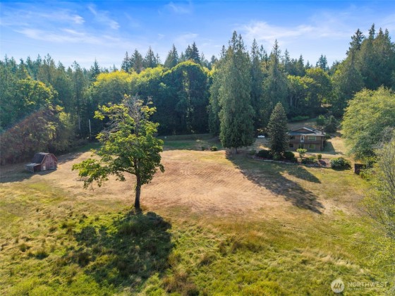 Welcome to this mid-century style home on 4.33 private acres. Open land framed by a natural border of tall evergreens offers both space and seclusion. This one owner home is ready for you to bring your vision. With over 2700 sq. ft you'll find a large open kitchen connected to living and dining spaces, large view windows, 3 generous sized bedrooms on main floor with roomy full bath. Additional flex living space on the fully finished lower level brings many possibilities for gatherings, hobbies, or work. Private yet convenient, this property offers the best of both worlds - lovely home on quiet acreage, minutes to Brownsville Marina, close to major shopping, health care and schools, easy commute to ferries and Bases. Come and make it yours.