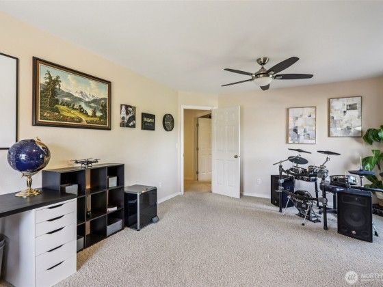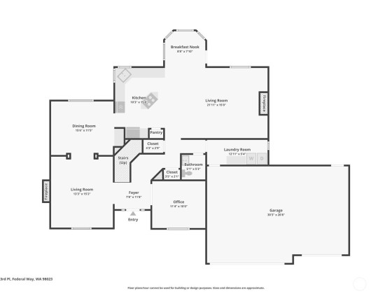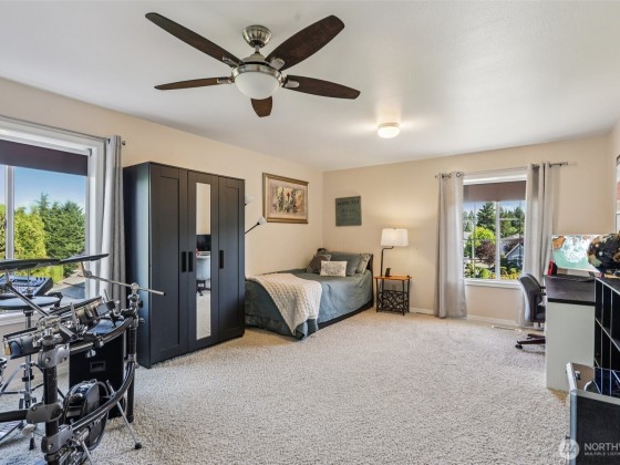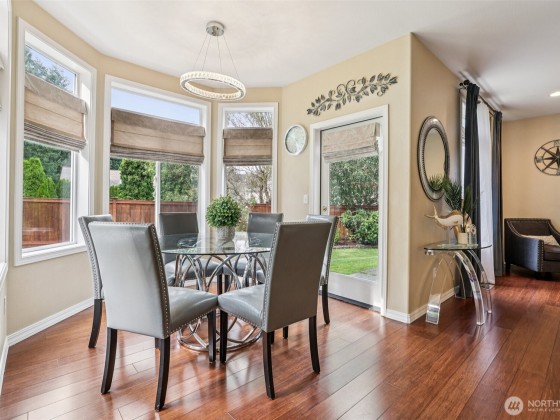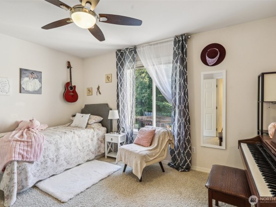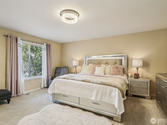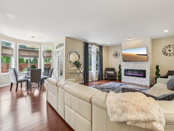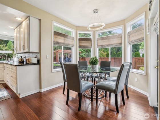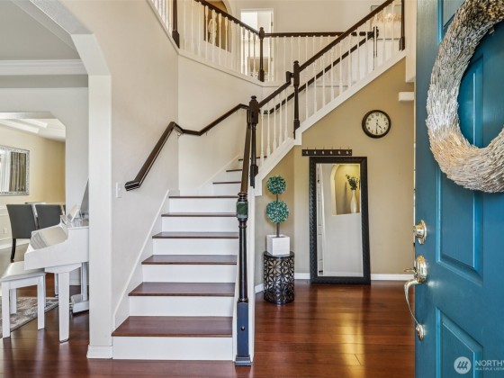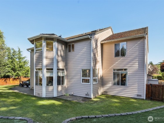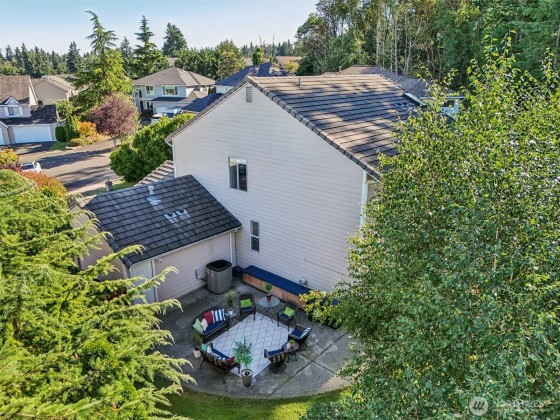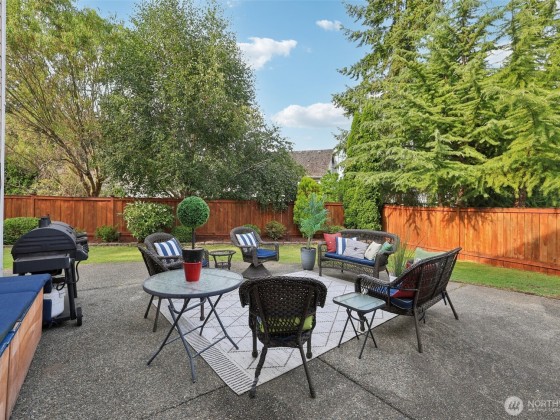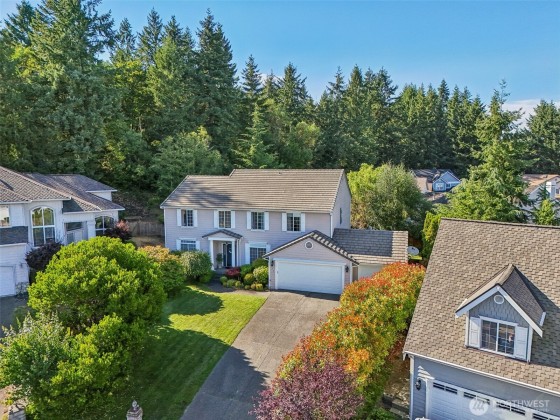 Step into this beautiful Colonial in desirable Bellacarino Woods! This immaculately maintained 4-bed, 2.5-bath home boasts 9-ft ceilings, a chef's kitchen with granite countertops, central AC, and spacious 3-car garage with lots of storage. Enjoy a large bonus room (currently 5th bed), main floor office, formal dining room, and cozy fireplaces. The outdoor oasis offers a patio, pergola, professionally landscaped grounds with sprinklers, and a private, fully fenced yard backing a 6-acre greenbelt. Located in a serene cul-de-sac, immune to street noise, close to schools, parks, BPA trail, King County Aquatic Center, & freeways for easy commuting. High-quality tile roof, Hardi Plank siding. Ready to move in—a must-see!