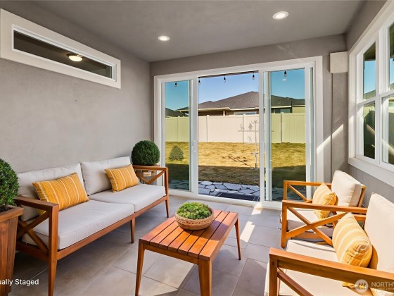 *** LENDER CREDIT OF UP TO 1% **** Welcome to Kestrel Point. This three bedroom single-level home has been well cared for and is looking for new owners! Open concept living, dining and kitchen space with patio doors out to a large side courtyard with a fire table. Large living room with a gas fireplace with wood mantle. Off the living rm is a recently enclosed patio with large windows to allow plenty of light and provide year round enjoyment of the space. Custom shades installed through the home. Primary bedroom w/custom blinds/blackout shades, large bathroom with dual sinks, walk-in shower and large walk-in closet. Upgraded patio area with flagstone pavers. Vinyl fencing, underground sprinklers and fully landscaped front yard.