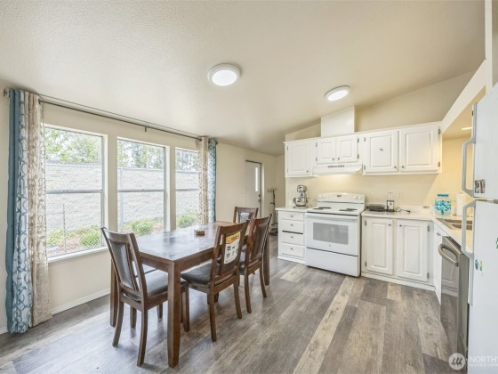 Manufactured home in Puyallup. Fully Updated 3 Bed, 2 Bath. Move-in ready with fresh updates throughout! Enjoy a bright open kitchen with wood cabinets, large pantry, and newer range/oven. Features newer vinyl plank flooring and cathedral ceilings. Spacious living & dining areas, plus a large primary suite with walk-in closet and fully renovated bath. Generously sized guest bedrooms and updated second bath. Includes a separate laundry room with storage, a dry backyard shed, and two-car parking carport. Located in a well-maintained, all-ages community—don’t miss this opportunity!
