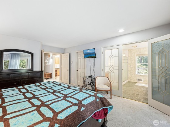 Discover luxurious living in this 4,286 sq ft home in the serene Alderbrook community, perfectly situated on the golf course with a 745 sq ft deck overlooking the 7th hole. Designed for entertaining, it features a great room, tall ceilings, 2 pellet stoves, a gas stove, and a spacious main-floor primary suite. A new range and dishwasher will be installed before closing. The lower level offers a huge open area, 2nd kitchen, 2 bedrooms, and a bonus room. Oversized garage with golf cart door. Hot tub ready! Enjoy Clubhouse activities—live music, karaoke, trivia—plus pickleball, tennis, trails, and proximity to Hood Canal and the Olympics.