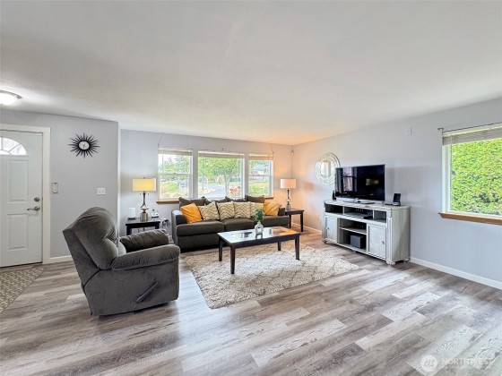 REDUCED-$50,000.00 for Instant EQUITY! Updated Sunny single-level 4-bedroom home in Sequim with modern finishes. Built in 2002 and remodeled in 2018. New Vinyl Plank flooring, main bedroom with ensuite, and 3 guest bedrooms with a full bath. Functional kitchen with bar counter. Large windows throughout. Covered outdoor deck with sunroom entry. Generator-ready. All appliance included, some furniture is negotiable in the purchase. Minimal maintenance yard with landscaping, Highland irrigation, & sprinkler system. Two-car 400sq' garage with storage. Easy access to Sequim's restaurants, shopping, beaches, parks, golf courses, & Discovery trail system via the adjacent Brownfield Road. 1378sq'. No HOA - Community Playground at end of road.