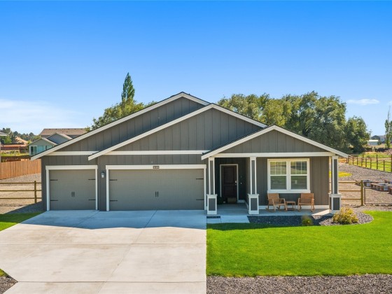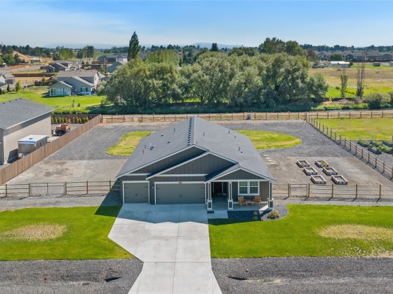 Build your dream shop! Located in the highly desirable Palomino neighborhood with views of the Stuart Mountains. This 4 bed/3 bath home sits on .68 acres and is close to town with a country feel. Fully fenced yard, irrigated lawn, and above-ground garden boxes. Plenty of room for a play structure, chickens, a shed, RV parking, and more! The home boasts 9-foot ceilings, an open concept living room, a fireplace, and a huge kitchen island. Stainless steel appliances. Window coverings throughout. Wind protection and privacy on the back covered patio. Laundry room and mudroom off the 3-car garage.