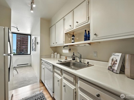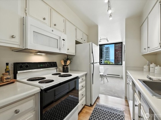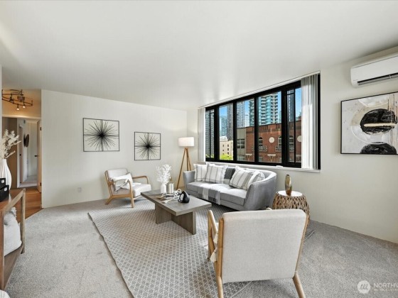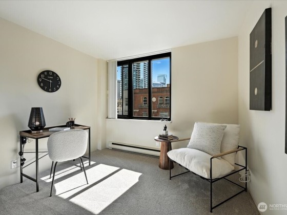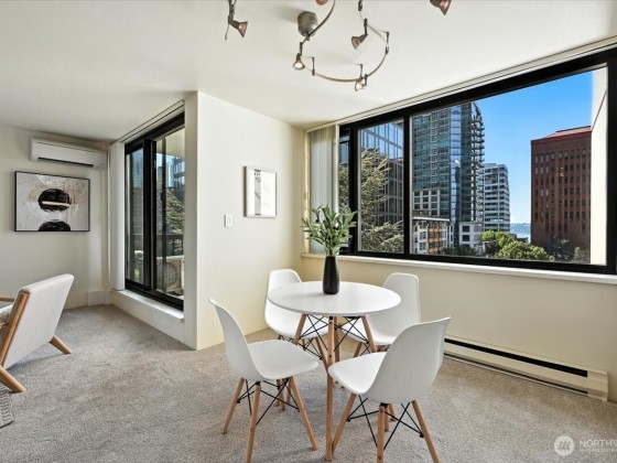 Unbeatable Value in the Heart of Belltown — Priced to Move! This 2BD/1.75BA condo is one of the lowest-priced opportunities in one of Seattle’s most vibrant neighborhoods. Are you craving city living without the premium price tag? This is IT! This corner-unit features city & partial Sound views from large, insulated windows, & private balcony. Fresh paint/new carpet offer a clean slate. Rare deeded covered, secure parking/private storage. HOA covers electricity, water, sewer, garbage, earthquake insurance, plus pool, sauna, gym, game room. Amazon lockers & on-site management. No assessments. Steps from the Space Needle, the Sculpture Park, world-class art, dining, & waterfront, Pike Place Market, public transit & much more. Make your move!