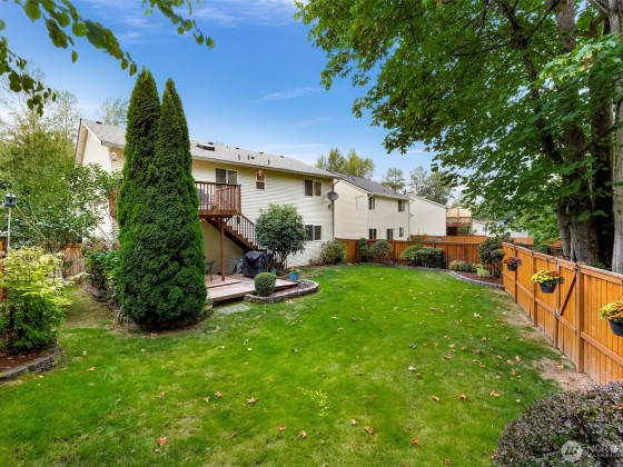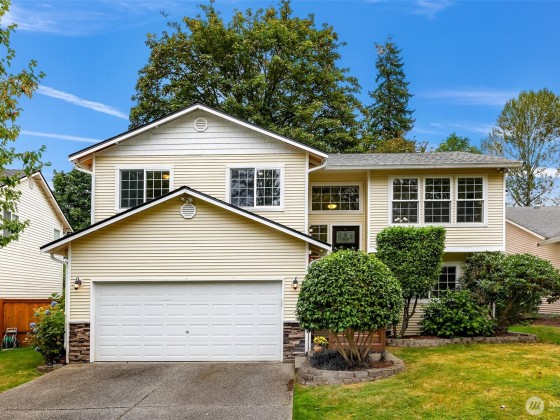 Welcome to this bright & charming home, located in a quiet cul-de-sac. It boasts of some recent upgrades & features like a NEW ROOF, a NEW water heater, a newer dishwasher/fence/deck. Upon entering, the stairs go up to the main level, which has a spacious living room with a gas fireplace, a chef's kitchen with SS appliances, & a skylight. Enjoy meals and entertain in the dining area, which is connected to a huge deck outside. This level features the primary suite with a walk-in closet and 2 additional bedrooms. The lower floor is fully finished with one more living room, a 4th BR, & a 3rd bath! The lower floor also opens up to an expansive yard that is backed by a protected area. Wired with smart switches. Pre-inspected. Make it yours!