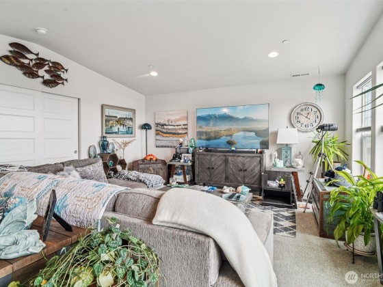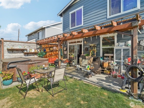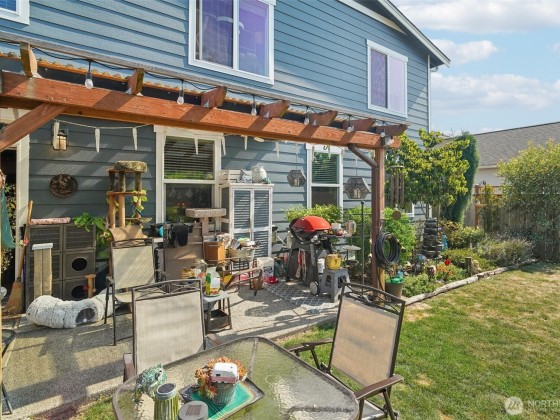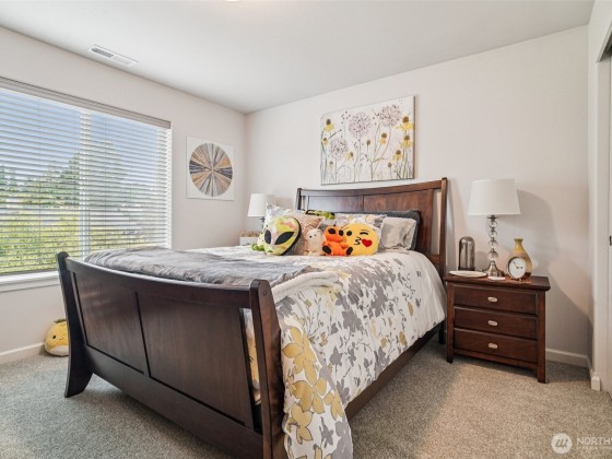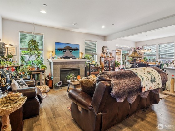 Beautifully crafted, this home blends modern comfort w/relaxed PNW charm. 6 bedrooms and 2.75 bathrooms, the two-story layout is ideal for anyone seeking extra space. The main floor features an open-concept living area filled with natural light, perfect for everyday living and entertaining. A bonus room and full bath provide flexibility for a guest suite, office, or hobby space. Upstairs, the private primary suite w/ en-suite bath is joined by three additional bedrooms, a second full bath, and laundry area. Hardwood floors and premium finishes add elegance, while the covered patio sets the stage for BBQs or quiet evenings outdoors. Enjoy serene water views, a two-car garage—all just minutes from schools, parks, and amenities.