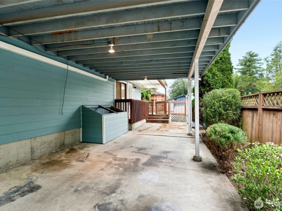 Tucked away in Burien’s Manhattan neighborhood, this charming 3-bed, 1-bath one-story home offers surprising privacy, adjacent wetland. Inside, you'll find a spacious main living area and kitchen along with flexible den with built-ins, an ideal office or creative space. Step outside to enjoy a newly landscaped backyard oasis—mostly fenced and perfect for pets, play, or quiet evenings on the deck. Fresh interior paint, new carpet, newer siding, 30-year roof in 2017. Attached carport, ample off-street parking. Outbuilding offers added storage. Jog/bike/skate trail across street. Minutes to shopping, bus, light rail, SeaTac Airport, Seattle and everyday activities. Smart, solid home option for those seeking value, versatility and convenience.