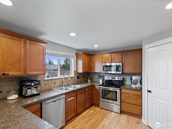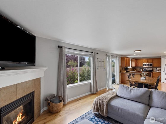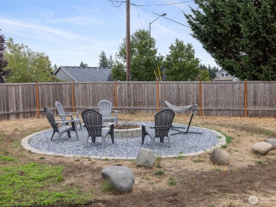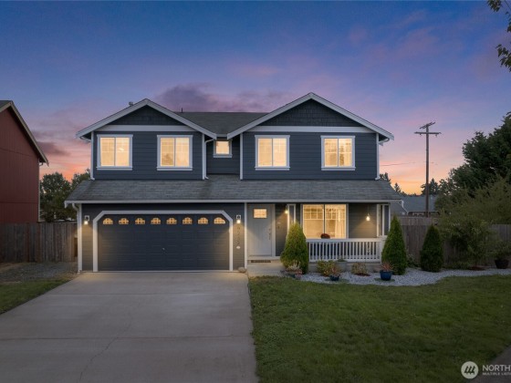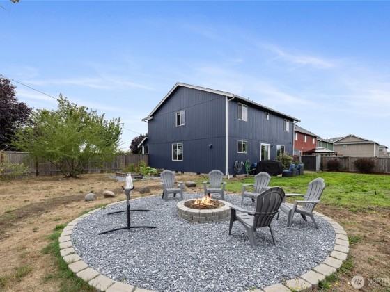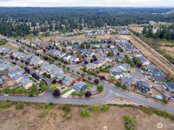 Fantastic 5-bedroom home on just under a ¼-acre corner lot with fresh exterior paint and Mount Rainier views from several rooms! Relax in the huge fully fenced backyard with firepit while eating juicy peaches from your very own peach tree. Kitchen offers plenty of counter space, storage, stainless steel appliances - all appliances included! The primary suite features French doors, a walk-in closet, and a 5-piece bath with water closet. Spend cool winter nights cozied up to the warmth from the gas fireplace. With the great location close to town, short commute to JBLM/Tacoma/Olympia, spacious layout, hardwood floors, oversized yard & mountain views, it's a must see to truly appreciate!