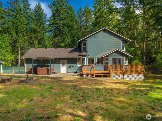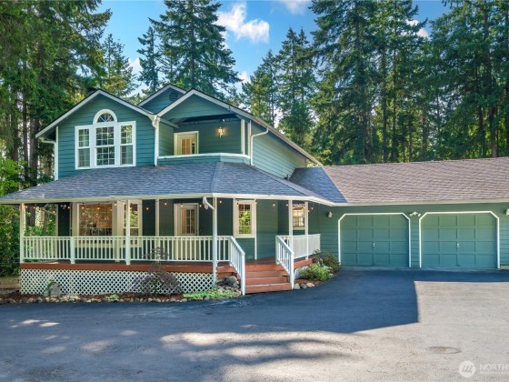 Enjoy this peaceful Graham retreat, tucked back from the road on 2.3 acres with space to relax, garden, and entertain. Inside, you’ll find a newly remodeled kitchen with granite counters, custom cabinetry, and eye-catching backsplash. A cozy wood fireplace anchors the living room, flowing through french doors into a designated dining room. Upstairs, new carpet leads to the updated primary suite with dual vanities and sleek shower. Two more bedrooms, a quaint patio, and full bath round out the upper level. Best of all: A/C and no HOA! Outside, cozy up on the covered front porch or soak up rays from the back deck. Complete with raised garden beds, hot tub, and RV parking.