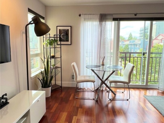 Welcome to this wonderful 4th floor studio in Seattle’s vibrant Capitol Hill area. No car needed with a 95 walk score! Naturally bright spacious living room & with stunning views of the sound, mountains, & the iconic Space needle. This unit features kitchen with granite counters, stainless steel appliances, built in cabinetry complemented by rich hardwood floors throughout, washer/dryer in unit, & a full bathroom plus 1 car garage & a good sized storage. Superb location close to South Lake Union, the light rail and all the amenities you need to enjoy your city lifestyle.