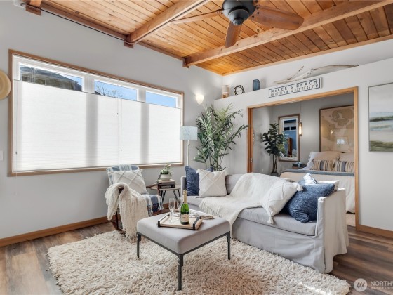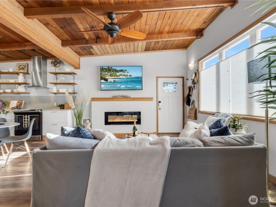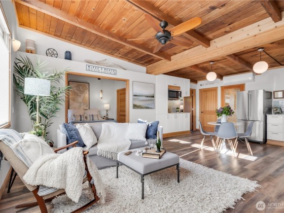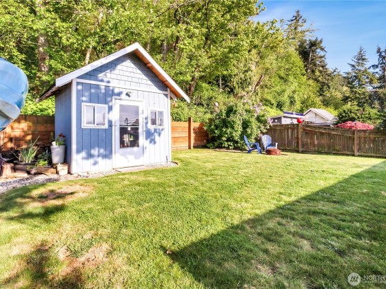 Beach access 2 doors down! No stairs rambler. McKee’s Beach Cottage! STR's allowed! Fully Remodeled & furnished! Charming 2 bedroom year-round cottage! 5 beach access points with w/2 boat launches. Thoughtfully re-imagined in 2018 w/new: roof, siding, plumbing, electrical, kitchen, bath, full-size laundry, etc. Vaulted original fir ceilings, waterproof laminate wood plank floors, casement-style windows, ductless heat/AC & tankless hot water. Covered patio/deck w/outdoor sink & BBQ. Peekaboo water view from fenced backyard. Storage shed. 5+ cars/RV/boat parking. From private beach, enjoy watching eagles, seals, orcas & crabbing on Port Susan. Short Term Rentals allowed (buyer to verify). Includes kayak & mower. Flat backyard for cornhole.
