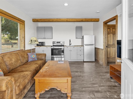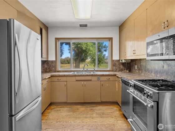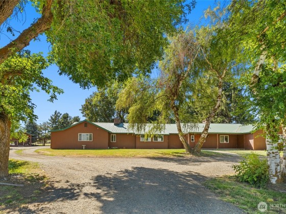 Discover the historic L.T. Murray Ranch House, tucked away on 8.22 irrigated acres on Ellensburg’s westside. This 3,190 sq. ft. ranch blends rustic charm with timeless style, featuring a vaulted great room with clear fir ceilings, a striking stone fireplace, and solid oak floors. The home offers 2 bedrooms plus a den/office, while a recently updated 1-bedroom, 1-bath ADU provides flexible living or guest space. Nestled among mature trees, the property also includes several original barns and loafing sheds, preserving its ranching heritage. A rare opportunity to own a secluded historic home with acreage, character, and endless potential.
