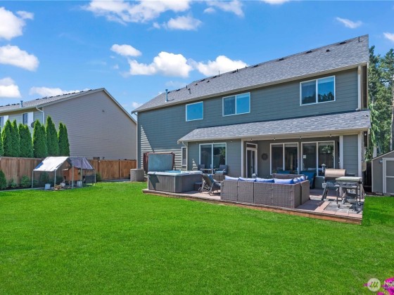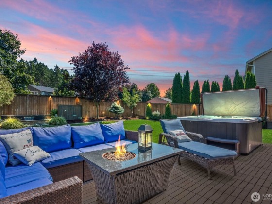 Immaculate and spacious two-story estate in the desirable and highly sought-after gated community of Grand Firs in Graham. This functional layout features 4 bedrooms + a Bonus Room and Office. Stunning high-end finishes throughout. Relax in the spa-like 5 piece en-suite off of the primary bedroom. Step outside into a backyard oasis that includes a gorgeous Trex deck, outdoor fireplace, outdoor TV & surround sound for entertaining, hot tub and a beautiful water feature surrounded by mature landscaping for tranquil scenery year round. Must see Garage that acts as workshop/workout area. Check out virtual tour!
