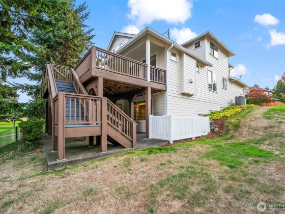 Welcome to the desirable Windance community in Browns Point situated on North Shore Golf Course. Designed for those seeking space or the perfect setup for multi-generational living, this home offers flexibility on every level. The main floor features primary ensuite for single level living, spacious open concept living & dining areas, a well-equipped kitchen + a den/office w/ French doors. Upstairs you’ll find a media room pre-wired for theater, two guest bedrooms & full bath. The daylight basement expands possibilities with a library & multiple flex spaces perfect for hobbies or MIL set up. Expansive trex deck overlooks the golf course. HOA covers lawn care, annual gutter & window cleaning, exterior paint, deck painting/staining and more!