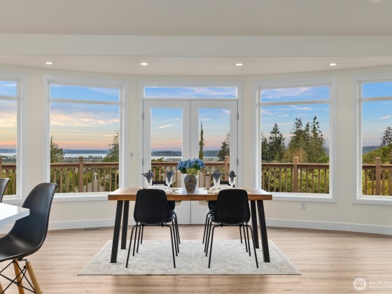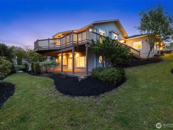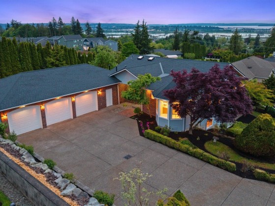 ~ Sit back and enjoy the view ~ Perched on an upscale hillside, this thoughtfully updated home enjoys panoramic views of the bay & Olympic Mountains. The open-concept kitchen/living is a chef’s dream — soak in the seascapes while using the stainless steel appliances, expansive quartz countertops, and ample cabinets. On the main floor, the primary suite welcomes you through French doors with a walk-in closet and elegant 5-piece bath. Downstairs offers a spacious flex space, 2 beds, den, ¾ bath, and utility room. Outside, enjoy sunsets on the Trex deck or shaded patio below for peaceful solitude. The large garage has 3 bays and a workspace, the perfect home for all your projects. Tucked away but connected, elevate your everyday.