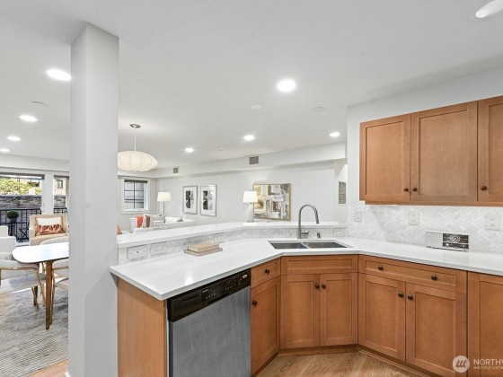Italian for a “nice place to live” and a “village on water”, this special residence in Bellagio lives true to its’ name. Sited above Puget Sound and Lake Union, it is encircled with views of water and is a small village unto itself Italian ambiance leads to open, spaces with dramatic indoor/outdoor feel. Decks merge of off the interior rooms for Duck Dodge vistas and Gasworks Park 4th of July fireworks. Recent renovations from the hardwood floors to the fresh paint enhance the living spaces yet lend privacy to the bedroom wing. If you do ever want to leave, the location affords access to everything Seattle. With 2 bedrooms, 2 baths and a bonus office nook, 2 car secured garage parking and storage, it is a very nice place to live.