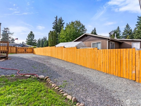Welcome to this stunning 3-bedroom, 2-bath home in a prime Puyallup location! Tucked just off 176th, you’ll enjoy quick access to Military bases, shopping, local airport, and Hwy 512 for an easy commute. Step inside to find vaulted ceilings that create an open, airy feel, complemented by fresh paint inside and out. The modern kitchen boasts quartz countertops, stainless steel appliances, and a custom backsplash, making it the heart of the home. Durable LVP flooring flows throughout, adding both style and practicality. Outside, the fully fenced yard offers privacy and space for gatherings, pets, or play. With a convenient 1-car garage and truly move-in ready condition, this home blends comfort, charm, and everyday convenience. Must See!