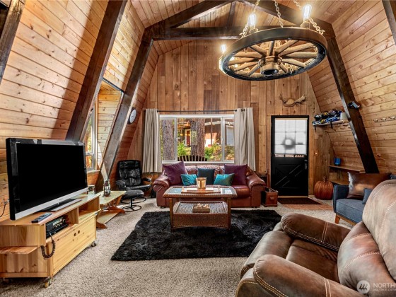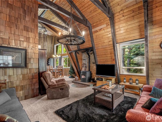 Nestled in the heart of nature, this secluded mountain retreat offers the perfect blend of privacy & comfort. This charming cabin features vaulted ceilings w/exposed beams, cozy pellet stove & sliding glass door that opens up to a spacious deck w/ hot tub. Thoughtfully designed layout includes 2 inviting bedrooms and a full bath on the main floor, while a loft & add'l bedroom upstairs provide ample space. Extra storage space beneath deck for all your gear. As part of the Pineloch Sun community, you’ll enjoy exclusive access to Lake Cle Elum’s beach, a welcoming lodge, seasonal swimming pool & sports courts. Enjoy endless trails, snowmobiling, boating & more! 15 min drive to Roslyn & Suncadia. Fully turn-key. Your next adventure awaits!