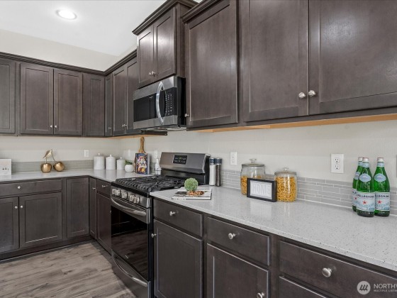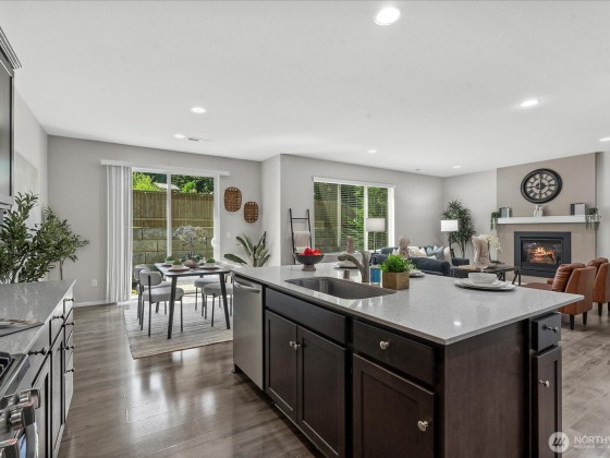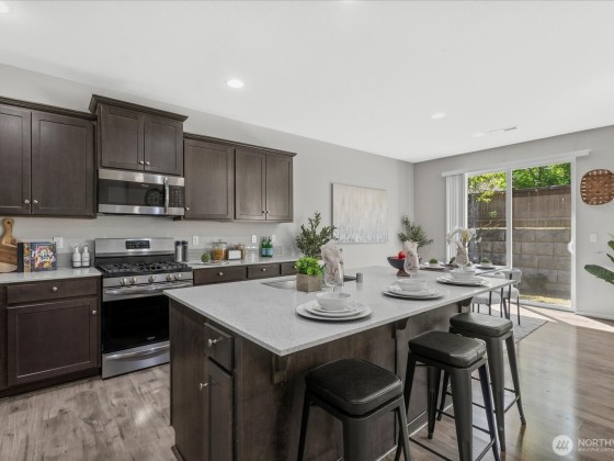 Welcome to the Rockport plan in The Grove! This impeccably maintained 5-bed, 2.75-bath home blends modern comfort with thoughtful design and quality finishes. The open layout features a spacious great room with gas fireplace and a gourmet kitchen with quartz counters, stainless steel appliances, gas range, oversized island, pantry, and generous dining area. Main-floor bedroom and ¾ bath. Upstairs boasts 4 bedrooms, large bonus room, laundry, and a luxurious primary suite with French doors, dual walk-in closets, double sinks, tile shower and soaking tub. Enjoy a fully fenced yard, fresh interior paint, newer upstairs laminate flooring, 220V EV outlet, and a 2-car garage. Prime Lake Stevens location near highways, shopping, parks, and dining.