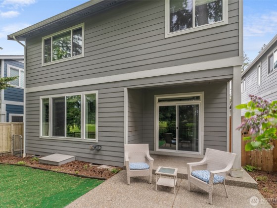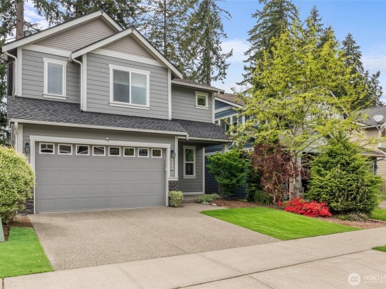 ** New carpet downstairs** Indulge in the ultimate luxury living on the First Fairway of Hawks Prairie Golf Course. This stunning Campus Peak home/5 bedroom plus an office and 2.5 baths, combining flawless design with exceptional details for the perfect paradise. Inside, you'll be greeted with elegance and style, rich espresso cabinetry, sleek quartz countertops, stainless steel appliances, and beautiful engineered hardwood floors. The primary suite is a sanctuary, offering a spacious 5-piece ensuite with a soaking tub, slate floors, and a walk-in closet. Located on a quiet dead-end street, solar panels, this home provides both serenity and convenience, with quick access to I-5 and JBLM.