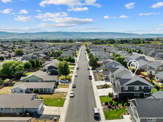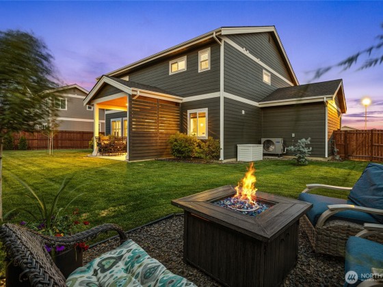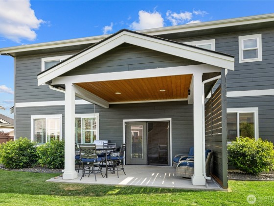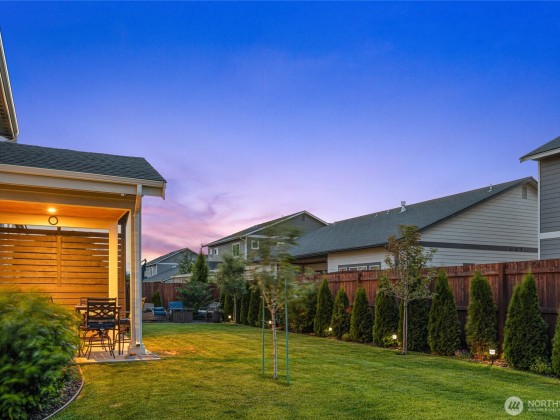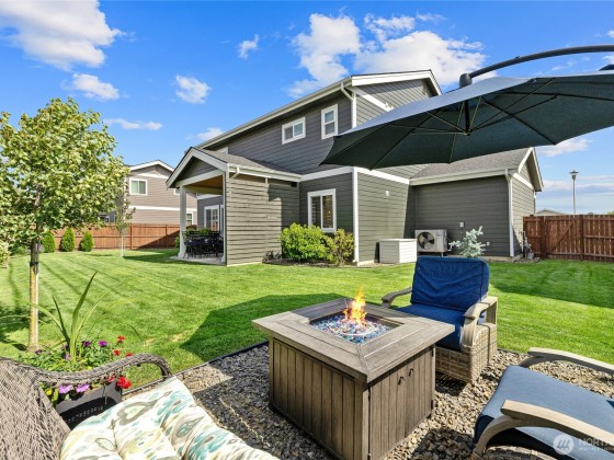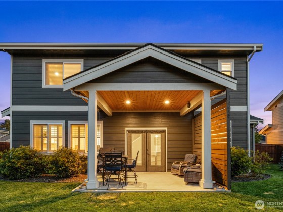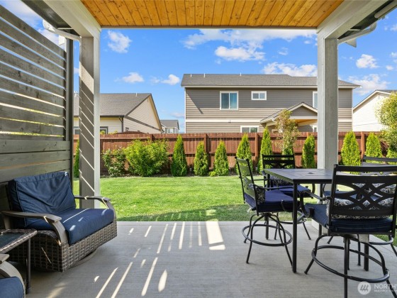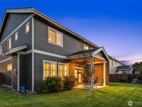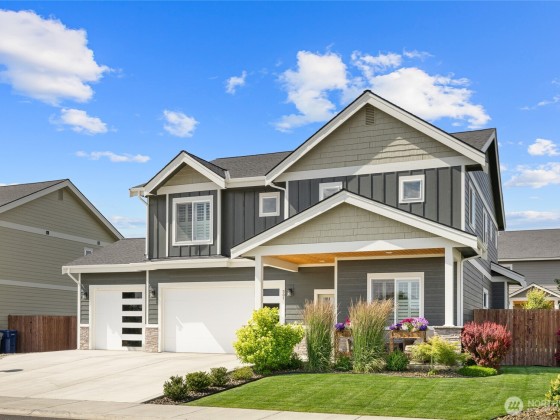 Modern & meticulously maintained 2,702 SqFt home elegantly designed w/ 4 beds+bonus room & 2.75 baths. Inside, enjoy 10-foot ceilings on the majority of the main level, open concept kitchen & living spaces, custom plantation shutters & gas linear fireplace w/custom built-ins. Spacious kitchen white shaker cabinetry + under mount accent lighting, quartz countertops,& stainless steel appliances.The primary suite boasts a vaulted ceiling, large walk-in closet w/ custom organizers, & an en-suite w/ a soaking tub & tiled shower. 3-car garage w/EV charger circuit & wired for generator. Beautiful covered & lit patio, fully fenced private backyard w/ lush landscaping, & underground sprinkler system fed by irrigation water complete the outdoor oasis