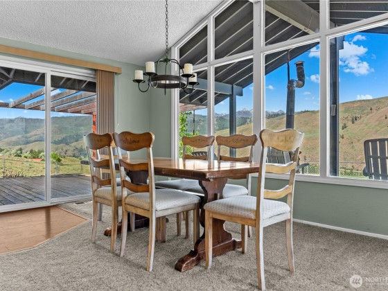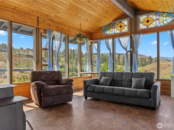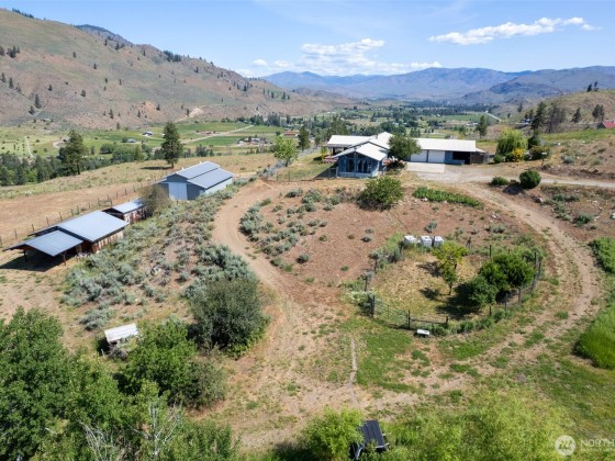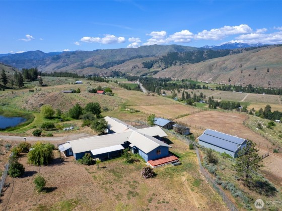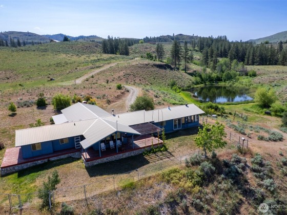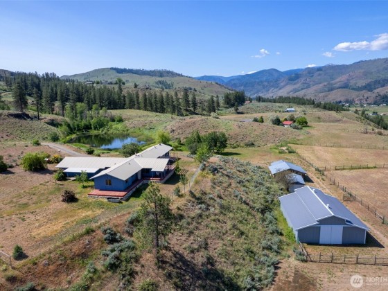 Experience this unique 3-bedroom, 2-bath home set on over 20 acres of stunning Methow Valley views. The property features a year-round sunroom and an expansive wrap-around deck, ideal for enjoying the fresh air during spring and summer. Multiple wood stoves add warmth and coziness for autumn and winter months. Horse ready property, includes a recently updated barn with 6 stalls, a tack room, and modern amenities. You'll also find two fenced pastures, a fenced backyard, and a spacious shop. Explore the beautiful landscape, which includes a large pond, variety of fruit trees, and picturesque views of the Methow River and North Cascades, all conveniently located close to public land for your outdoor adventures. Schedule your visit today.