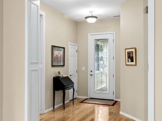 Elegant, Timeless, Classic Canterwood floorplan, close to the Lodge in desirable Jubilee 55+ community. This home has been lovingly cared for and updated with custom features throughout. Gleaming Hickory hardwood floors greet you as you enter and carry you to the grand living and dining area complete with views of the professionally landscaped backyard and fountain. Custom wainscoting adorns the doorways adding character and charm along with the built-ins around the fireplace & den area off the kitchen. In the primary bathroom a grand zero entry shower has been installed, and the guest bath has been upgraded with a walk-in hydrotherapy tub. A/C will keep you cool all summer long, & you will love the new roof and recently painted exterior.